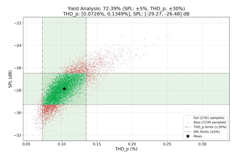 This data trained an AI Surrogate Model which performed a Monte Carlo analysis, predicting how manufacturing tolerances would affect the final production yield.