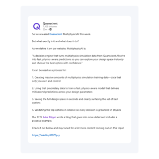 In this white paper, our Lead AI Developer, Dr. Caglar Aytekin, covers all the steps for using Quanscient MultiphysicsAI for AI-driven engineering simulation.